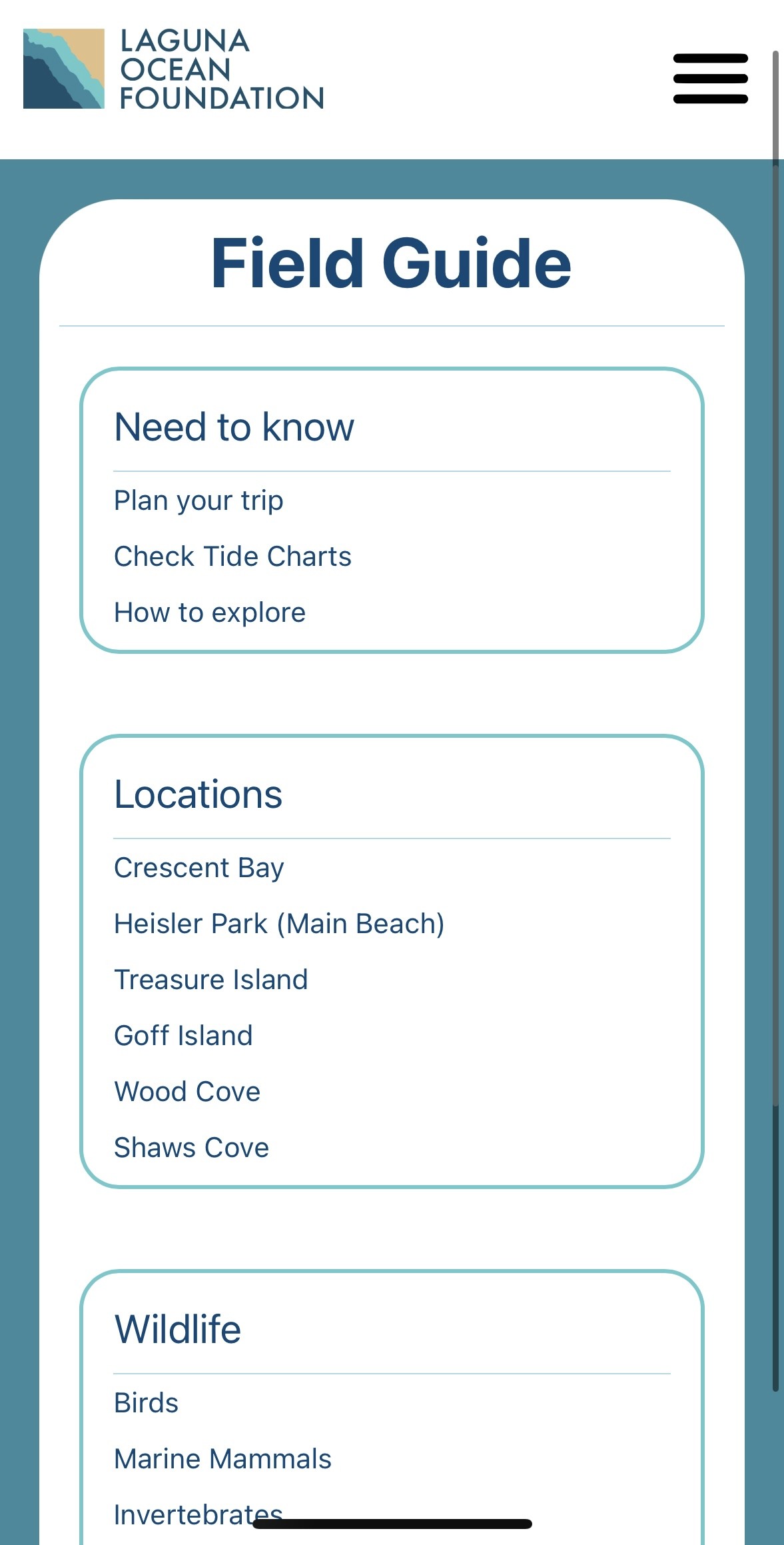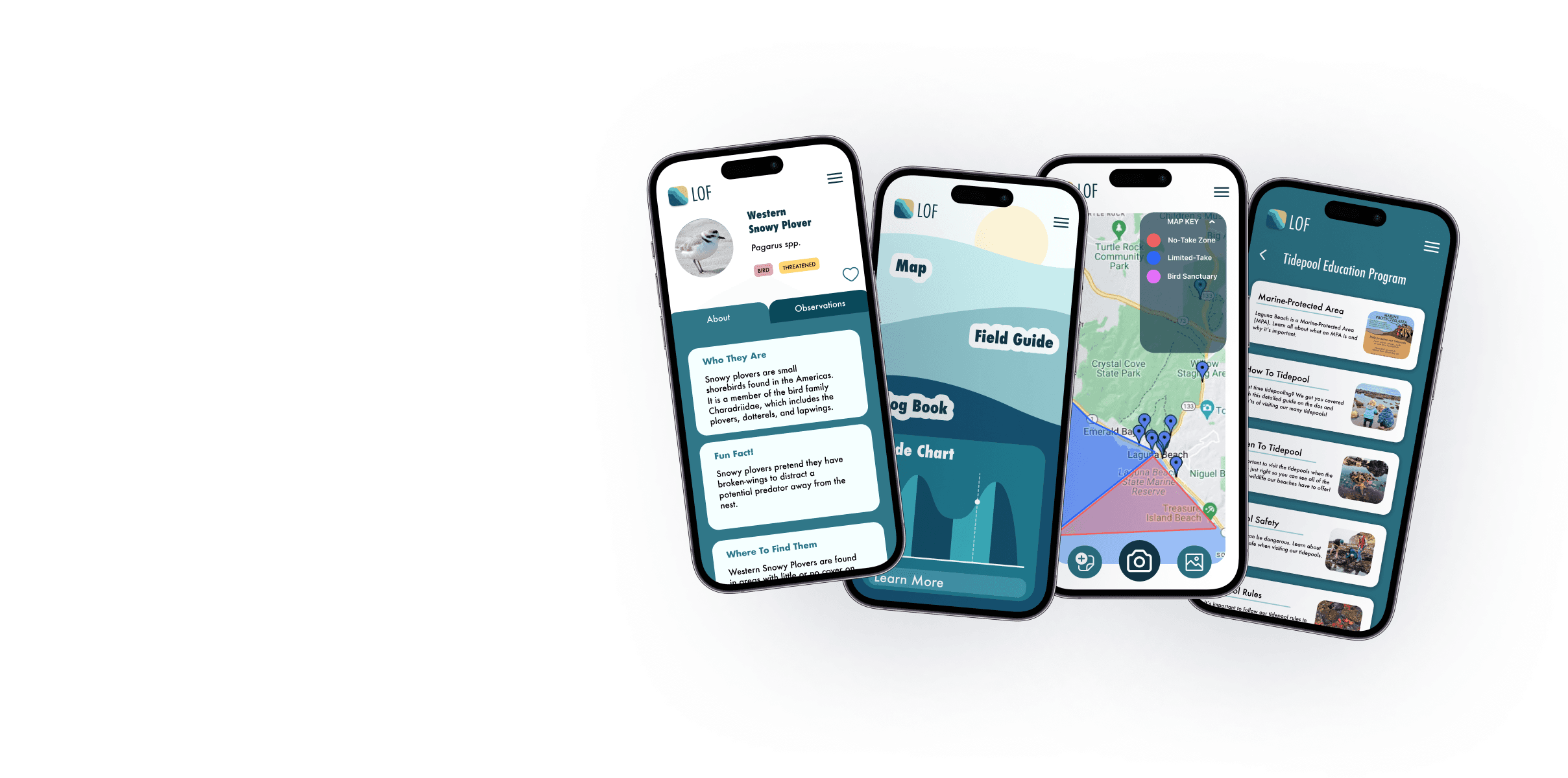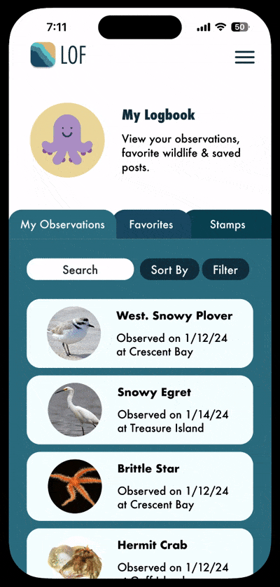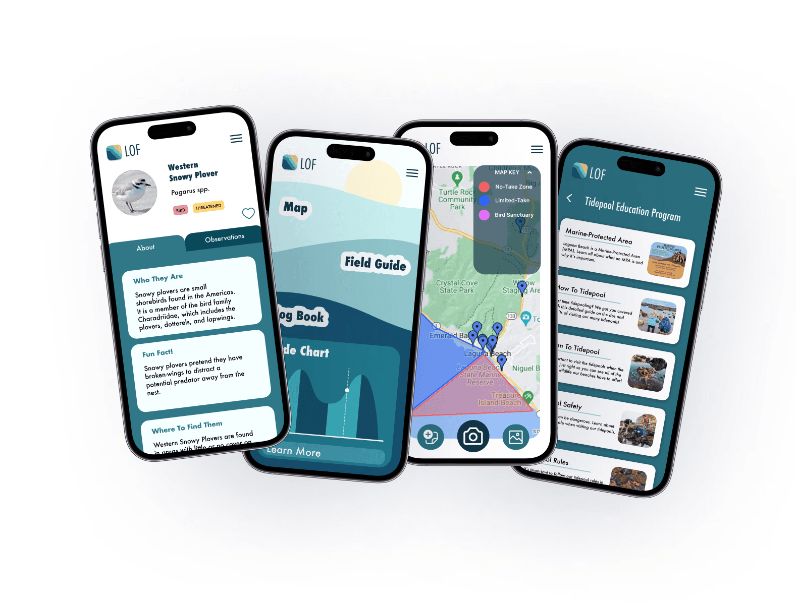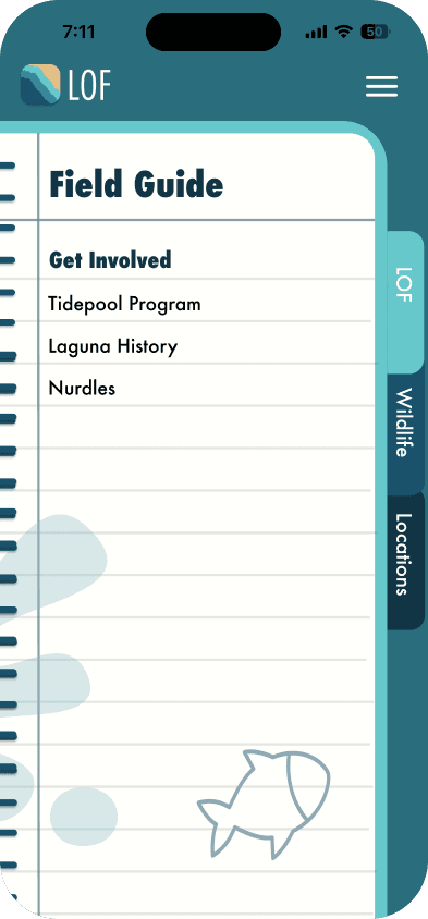 The Laguna Ocean Foundation (LOF) is a nonprofit organization dedicated to the conservation of Laguna Beach and its wildlife. In order to better inform the public about LOF's mission, my team was tasked with creating a mobile web application focused on educating, engaging, and inspiring visitors to help contribute to conservation efforts.