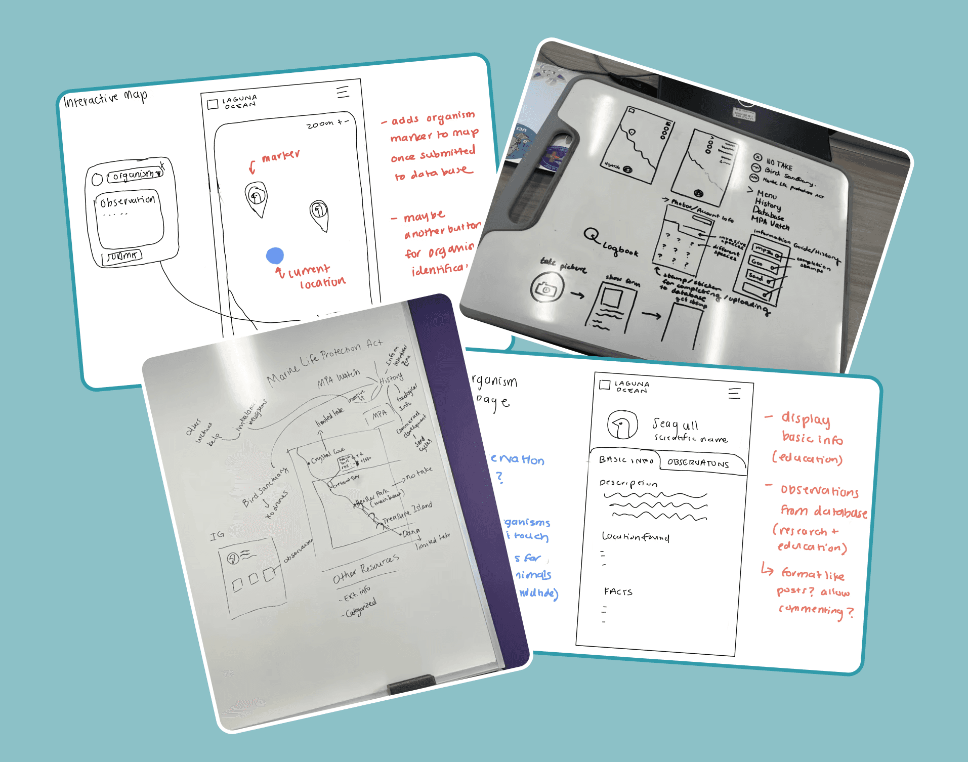 Ideas that stood out were: an educational field guide to help visitors access relevant and important information, an interactive map allowing visitors to navigate the beach and log their findings as part of the citizen science program, and a logbook that allows visitors to save their findings