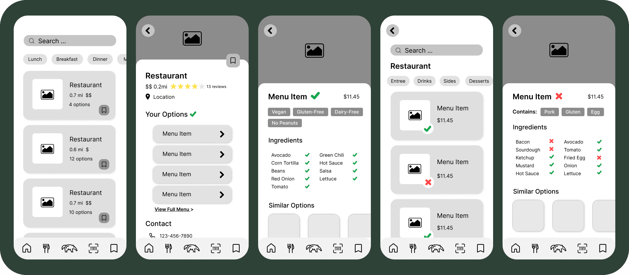 As a group, we learned about the prevalence of food accessibility issues and how to address them. Listening to the responses of both our interview and usability testing participants helped us gain a deeper understanding of the dietarily restricted community, which further guided us in creating/revising our prototype solution.